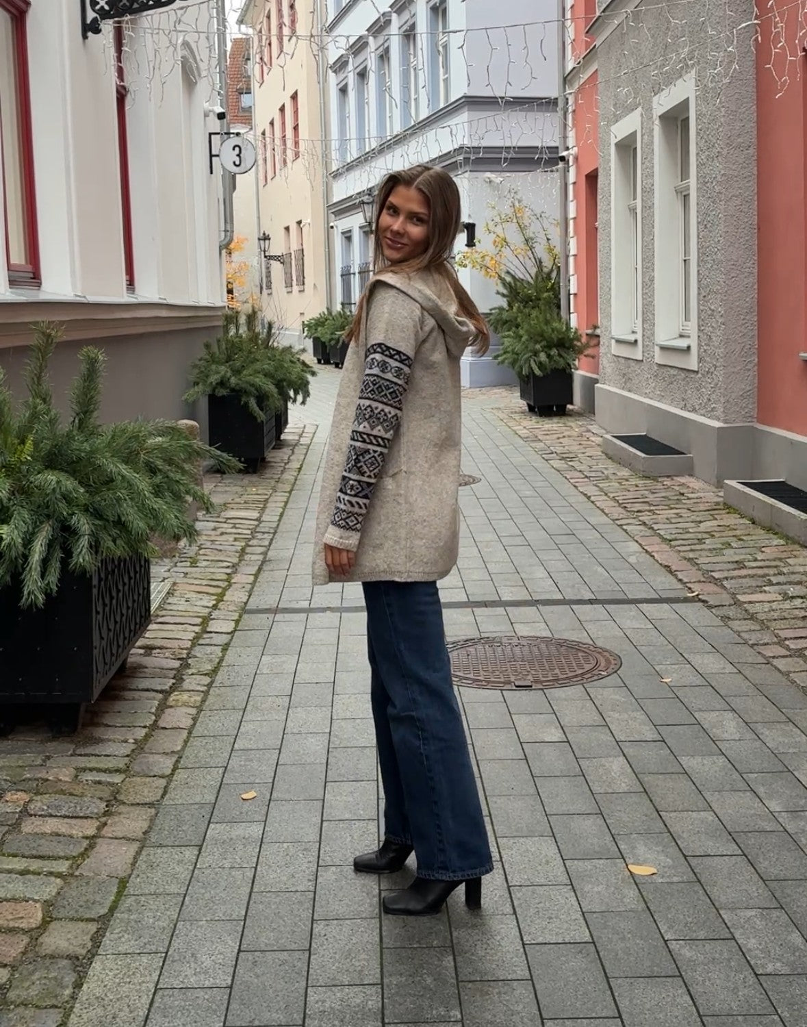 Nokļūt siltumā un mājīgumā ar eleganto adīto jaku “Alise”. Roku darināta no kvalitatīvas dzijas, šī jaka apvieno tradicionālu rakstu šarmu ar mūsdienīgu, ērtu piegriezumu. Mīkstā tekstūra un kapuce nodrošina patīkamu komfortu gan ikdienas gaitās, gan atpūtai mājās.