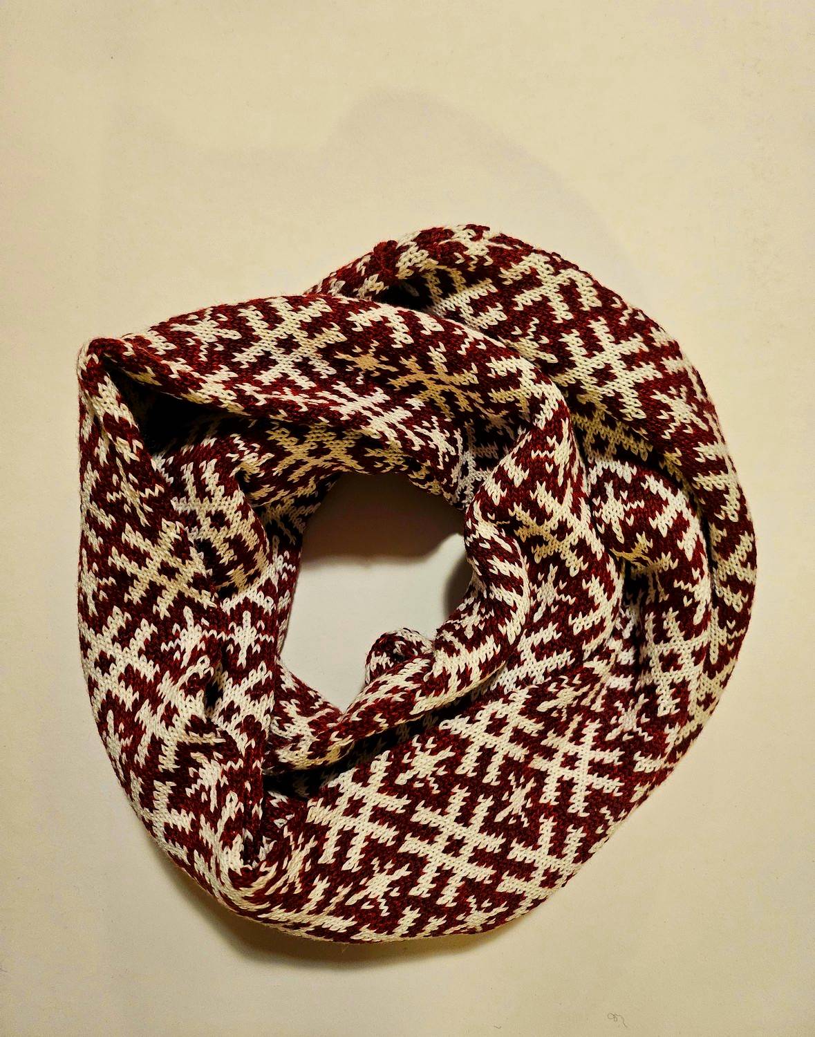 Silta un ērta apaļšalle ar tradicionāla raksta iedvesmotu divkrāsu dizainu. Izgatavota no mīkstas, patīkamas un elpojošas dzijas, tā perfekti pieguļ ap kaklu un sniedz komfortu aukstākajās dienās. Apaļšalles forma ļauj to uzvilkt vienā kustībā, nodrošinot gan praktiskumu, gan stilu. Lieliski papildina gan ikdienas, gan ziemas garderobi.